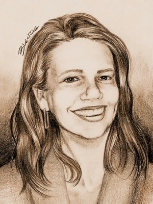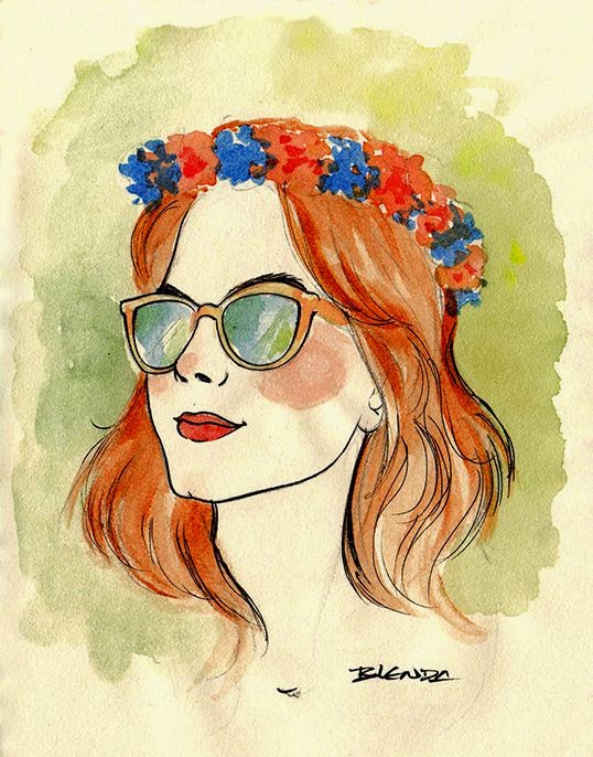 Esta linda moçoila abaixo já me serviu de inspiração algumas vezes, e não importa a técnica, sempre sai especial! À esquerda utilizei lápis 4B para o cabelo e para as sombras, e por cima do grafite passei Aquarela. As manchas do grafite que foi levado pela água do pincel me foi uma surpresa muito fortuita e com isso utilizei esta técnica outras vezes. A única finalização à caneta foi no óculos e nas pupilas. Isso gerou um destaque que eu gostei bastante!