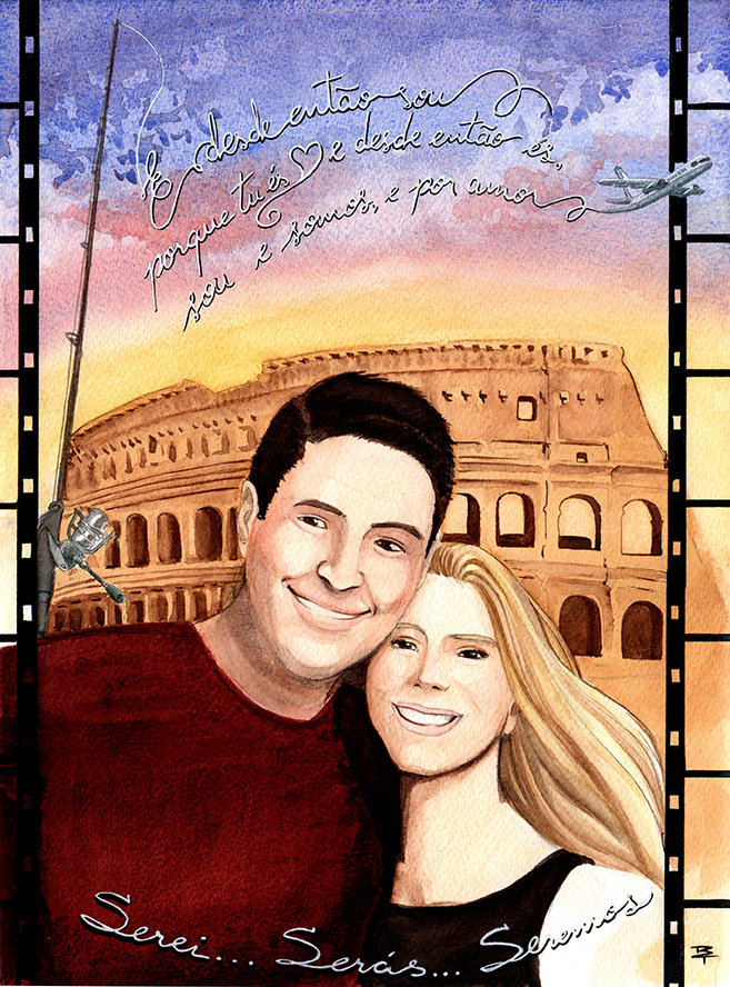 Ela me procurou via email pois resolveu presentear seu amado em uma data especial. Me contou sua linda história… e como foi bom poder fazer parte de algo tão significativo! Este casal maravilhoso agora tem uma arte para eternizar elementos tão marcantes que representam os dois: