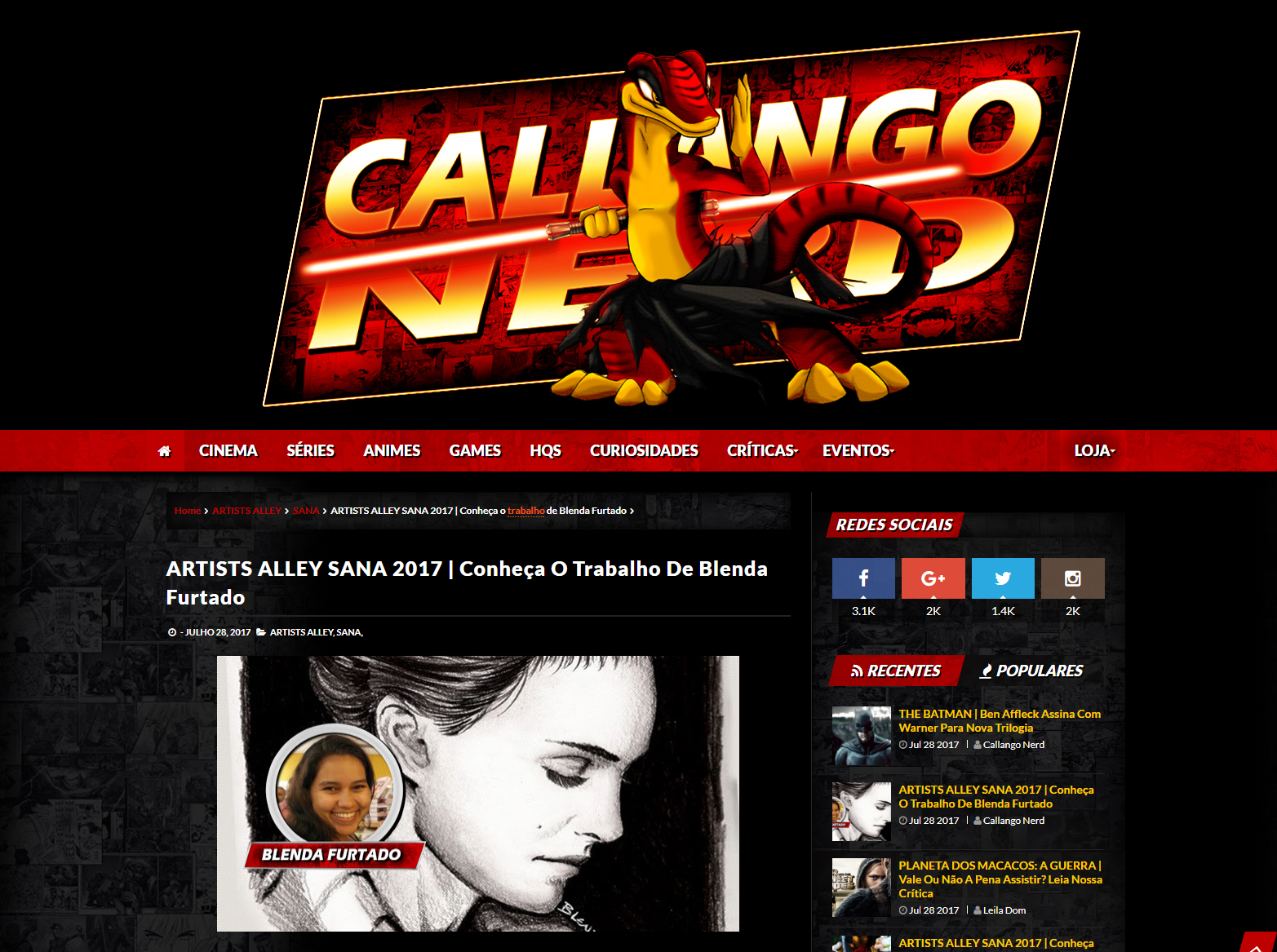 O Marcio do Callango Nerd, Está com uma série de postagens onde conta a história e apresenta o trabalho dos quadrinistas e ilustradores presentes no Artists Alley do Sana 2017.