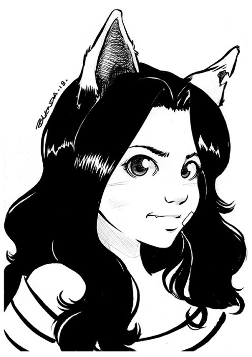 Foi proposto como exercício da Oficina de desenho avançado do Estúdio Daniel Brandão fazer um desenho tipo auto retrato de memória em um traço estilizado. Na minha turma de amigos, ligamos as personalidades de alguns a animais: Uma é um gato gordo, outro é o amigo bode… eu sou meio “dog person” e minha personalidade se liga mais ao vira latas. Assim, nada mais divertido que orelhinhas de vira latas, não é mesmo? Rsrsrsrs