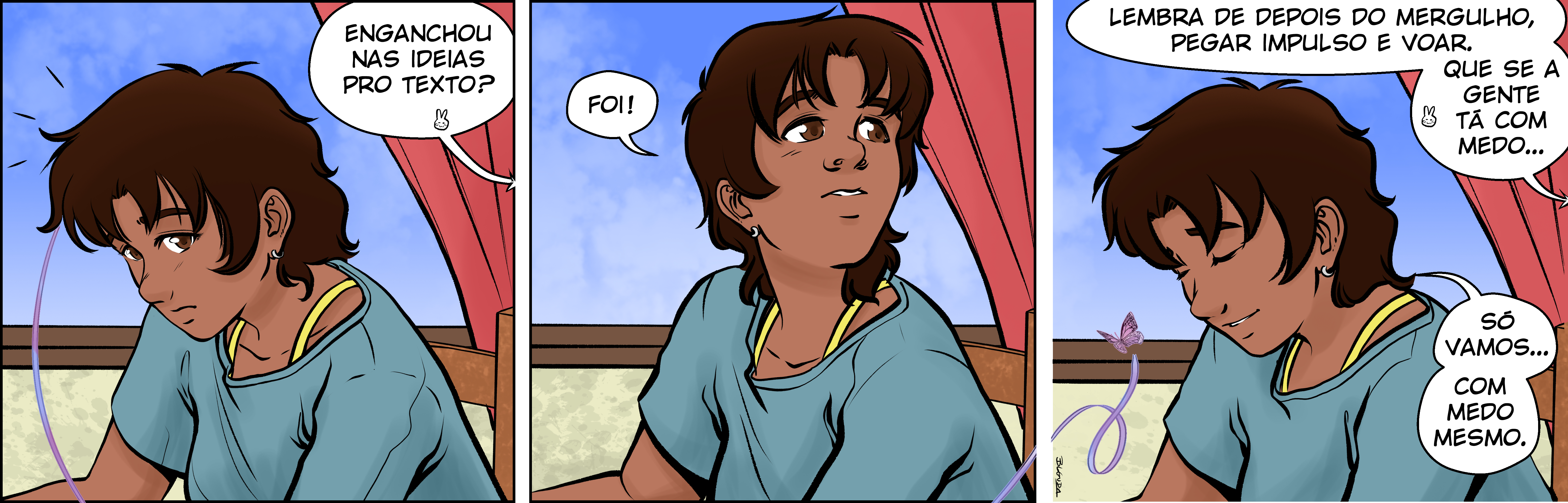 A Nanda é uma personagem autoral que tenho um enorme carinho. As tiras são publicadas todas as sextas no Jornal O Povo, na cidade de Fortaleza – CE. Inicia da primeira tirinha e vai evoluindo até as mais atuais.